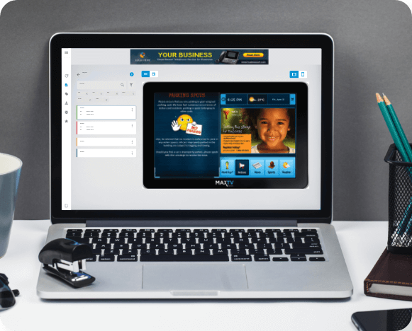 Si vous recherchez améliorer la communication dans votre condo, nous vous aiderons à remplacer les vieux bulletins d’information par des écrans interactifs numériques dans vos ascenseurs, halls d’entrée ou espaces communs. Notre plateforme a tous les outils, les fonctions et le soutien nécessaire pour vous permettre de réussir.